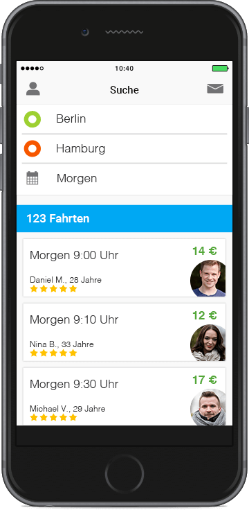 Finde immer und überall Fahrtangebote